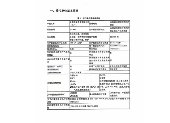 云南歐亞乳業有限公司(二廠)信息公開
